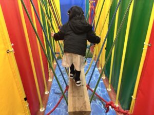 大きなエアートランポリンやバルーン遊具でジャンプ&スライドやボルダリングがあり、バランス感覚を養いながら遊べます。